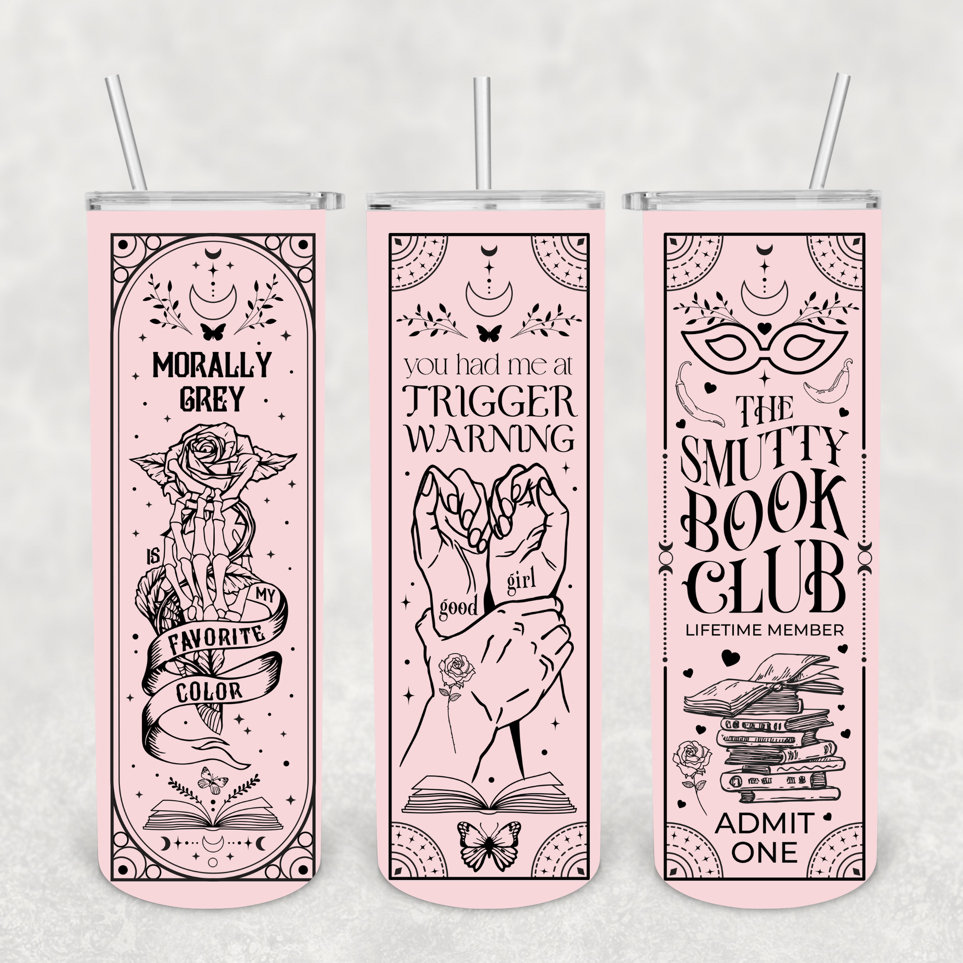 Pink smutty book club 20oz tumbler. Versatile and durable, these tumblers are perfect for a wide range of occasions, whether it's sipping your morning coffee during your commute, enjoying a refreshing iced tea by the pool, or staying hydrated during outdoor adventures. The stainless steel construction ensures long-lasting durability, while the double-walled insulation provides superior temperature retention. Whether you prefer icy cold refreshments or piping hot drinks, these tumblers have got you covered, keeping liquids cold for up to 24 hours and hot drinks steaming for up to 8 hours.