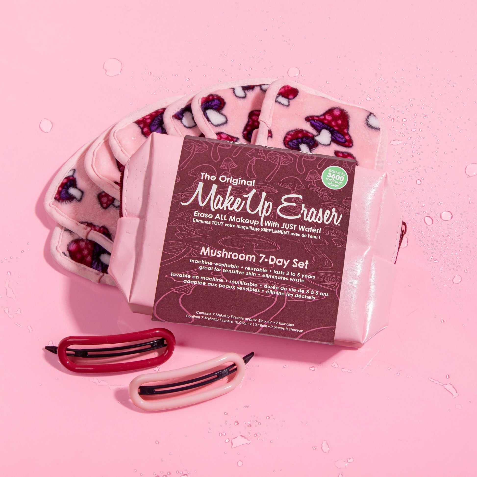 Mushroom 7-Day Set includes: 7 mini MakeUp Erasers. One mini for every day of the week! Each mini MakeUp Eraser measure approx. 5in. x 4in.